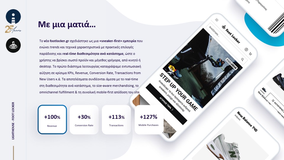 Sneaker-first εμπειρία για το ελληνικό κοινό της Foot Locker, με mobile-first σχεδίαση, Vendallion Powersearch και size-aware πλοήγηση που επιταχύνει την εύρεση σωστού μεγέθους. Real-time διαθεσιμότητα ανά κατάστημα και επιλογή με ΤΚ δίνουν διαφάνεια στο στοκ, ενώ το ERP sync διασφαλίζει ακρίβεια σε προϊόντα/τιμές. Το Fulfillment Order Management κατανέμει έξυπνα παραγγελίες (εγγύτητα, απόθεμα, ship-from-store), με ευέλικτη παραλαβή από καταστήματα ή μέσω Box Now. Το Release Calendar με pre-order αναδεικνύει drops/collabs, ενώ το Touchpoints Report βοηθά στην κεντρική διαχείριση όλων των παραγγελιών σε φυσικά καταστήματα και web.
